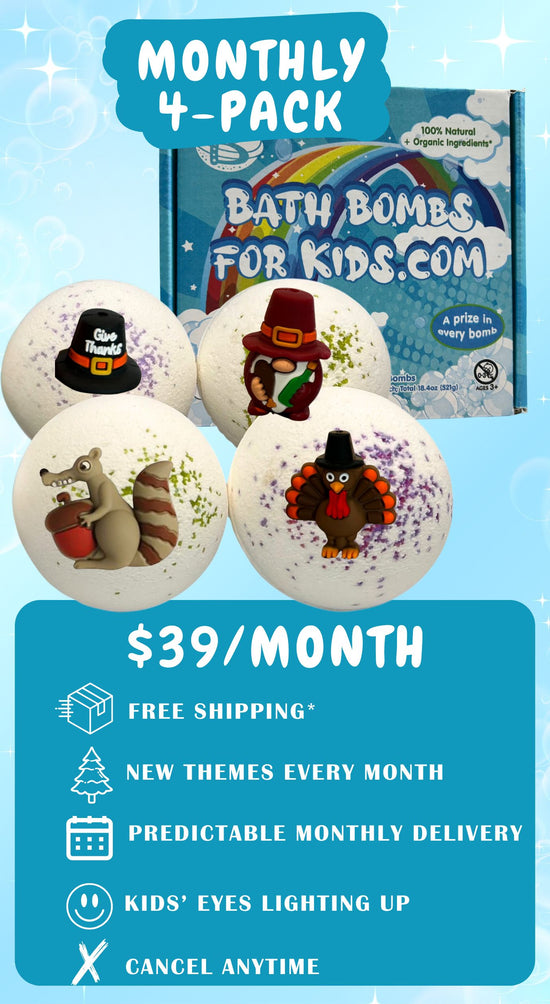 Each month they will get a new set of 4 premium bath bombs with a fun, unique surprise hidden inside each one.