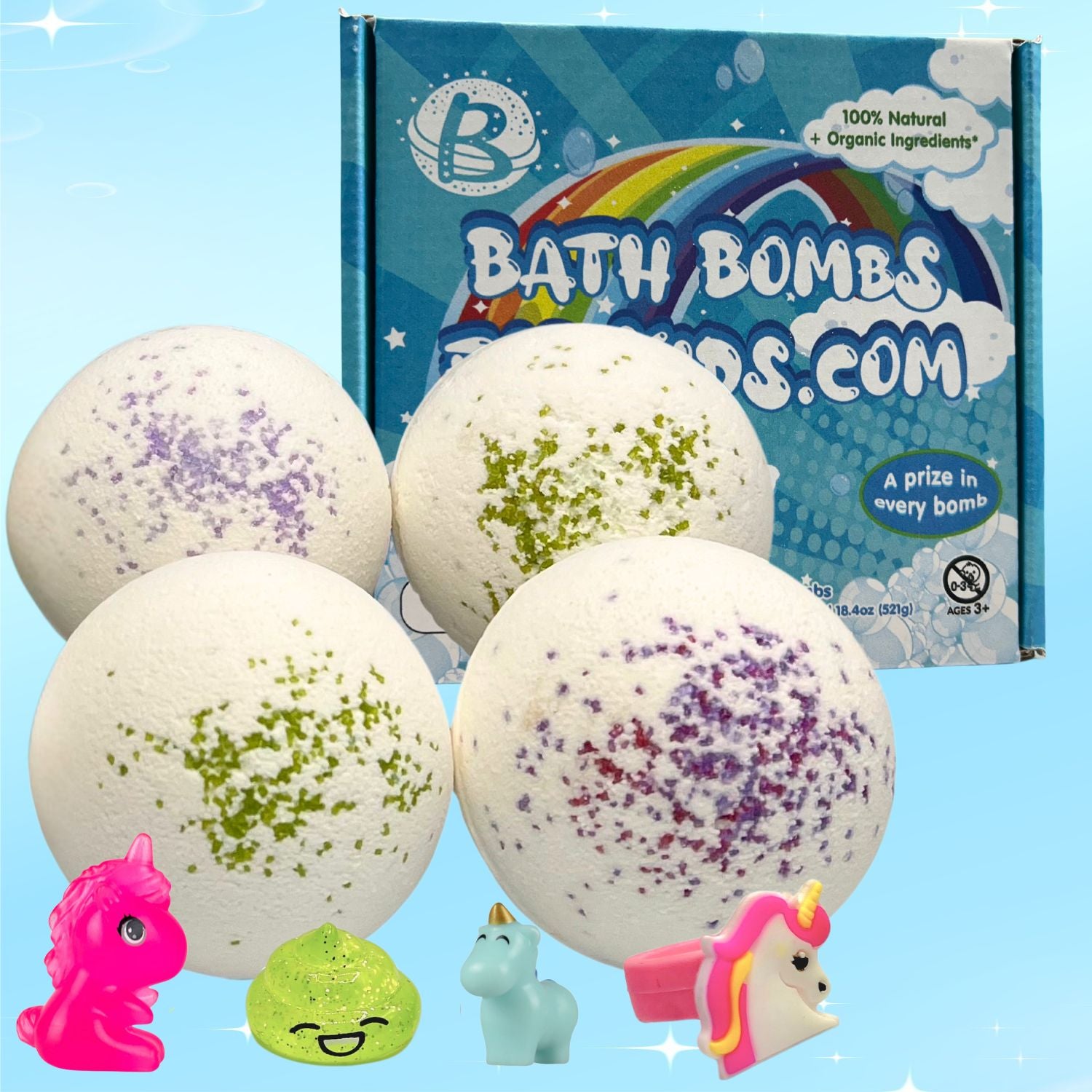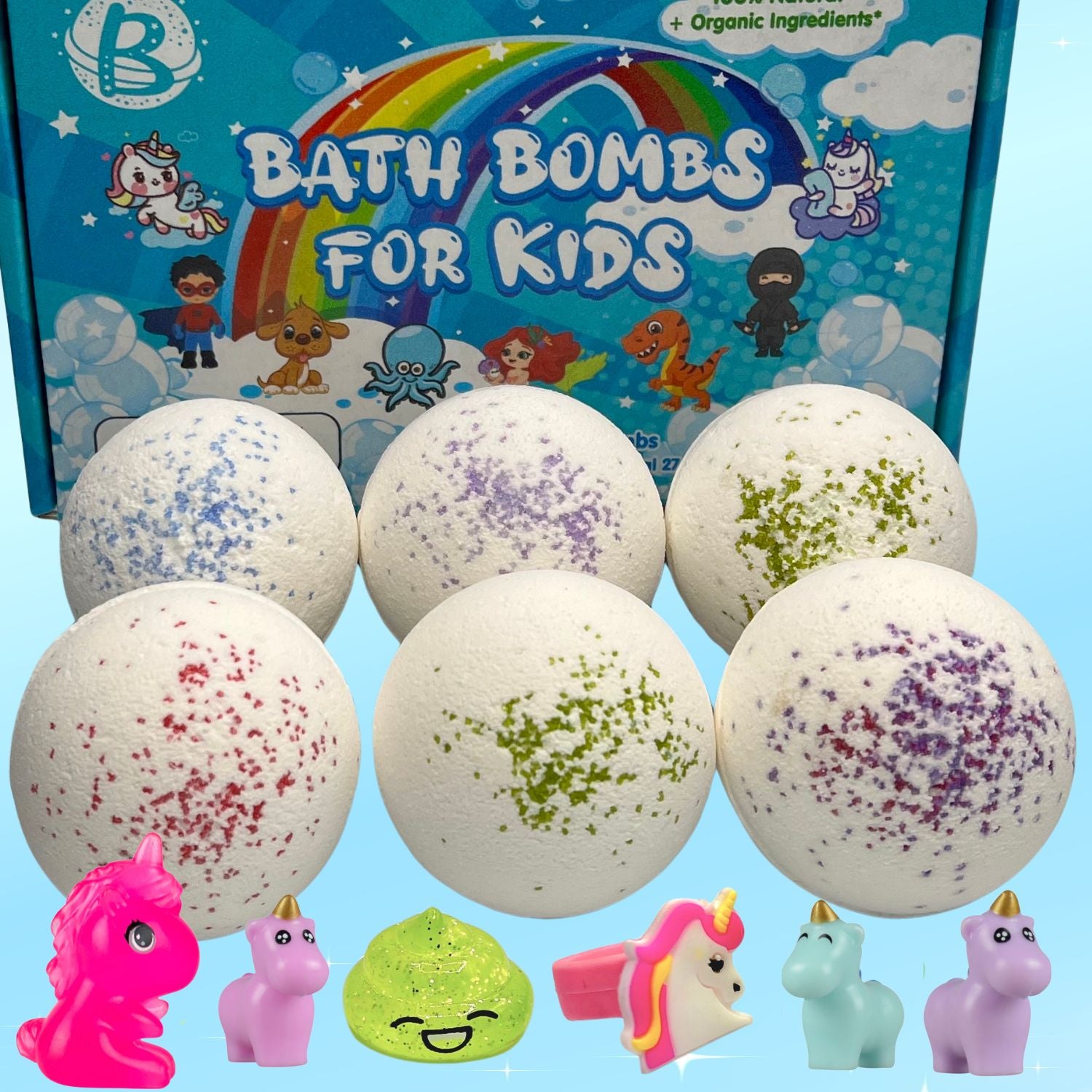 Toys: Every bomb will come with a unicorn surprise! This could include a ring, unicorn poop, or a mini unicorn of various colors.